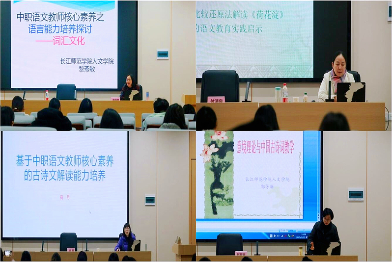 2月20日至21日,草莓视频 黎燕敏、付清泉、高月、郭芳丽四位教师受邀为南充市中职语文骨干教师培训班学员作专题讲座,涵盖语言能力、现代文阅读、古诗文解读以及古诗词意境教学等方面的内容。