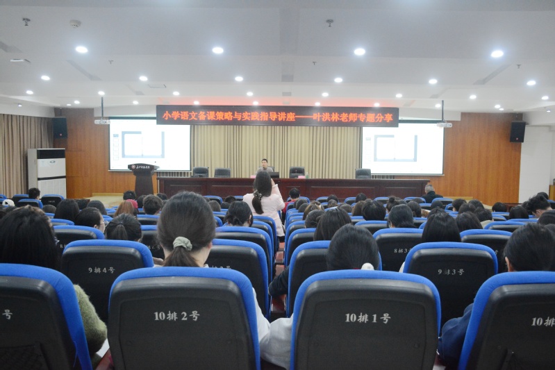 为进一步加强师范生教学实践能力培养,助力新时代语文教育人才成长。3月25日晚,草莓视频 在鉴湖学术报告厅举办“小学语文备课策略与实践指导”专题讲座。讲座特邀重庆市涪陵区教育科学研究所副所长、正高级教师叶洪林担任主讲,学院副院长胡建华主持,2022级汉语言文学(师范)专业全体学生参加。