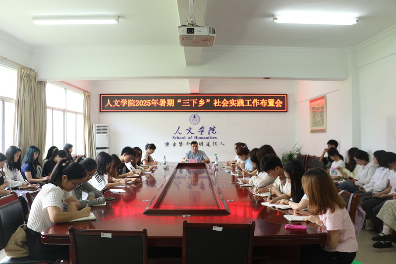 6月27日下午,人文学院在钩深楼南楼414会议室召开2025年暑期“三下乡”社会实践工作布置会。学院学工办主任、团委书记王勇,带队教师宋虹摇、马亚菊、罗燕及全体志愿者参加。
