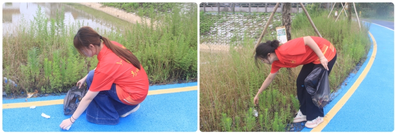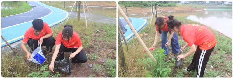 活动中,志愿者们分工协作、互相配合、干劲十足,手持清洁工具,沿着文心湖岸边清理枯枝烂叶,捡拾河岸边的塑料袋、矿泉水瓶、泡沫塑料等废弃垃圾。经过志愿者们耐心清理后,文心湖沿岸周边环境焕然一新。