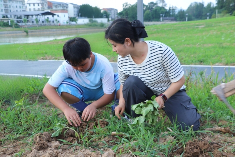 在向日葵种植活动中,志愿者与小朋友们共同协作,松土、锄草、播种、浇水......通过“沉浸式”劳动体验,小朋友们走出教室、亲近自然,在汗水与欢笑中真切感悟“一分耕耘一分收获”的道理,感知劳动乐趣。