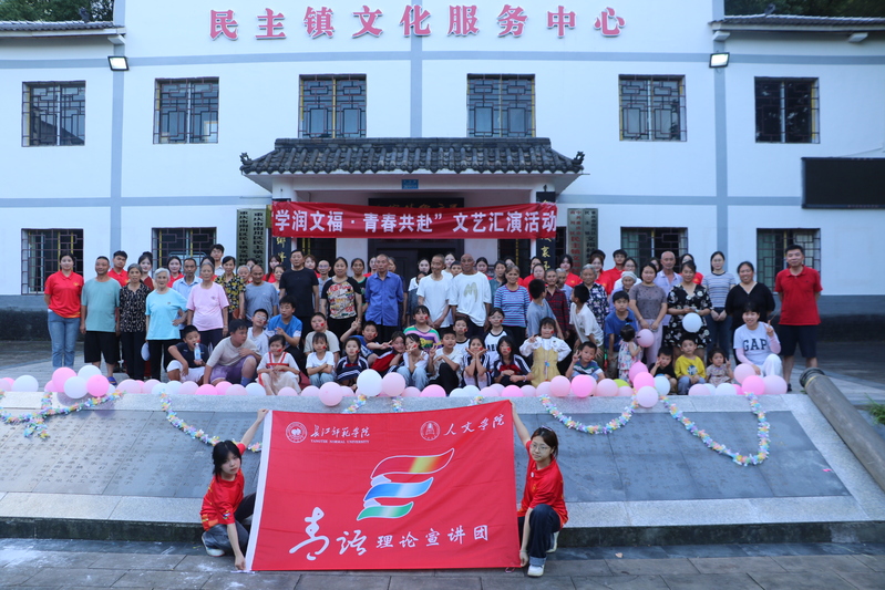 7月13日下午,草莓视频 “青语”理论宣讲团2025年大学生暑期“三下乡”文艺汇演在南川区民主镇文化服务中心成功举办。民主镇党委副书记、镇长韦小华,组织委员韩楚,纪委书记刘小凤;学院学工办主任、团委书记王勇,带队老师马亚菊、罗燕、宋虹摇与民主镇居民群众一起观看演出。