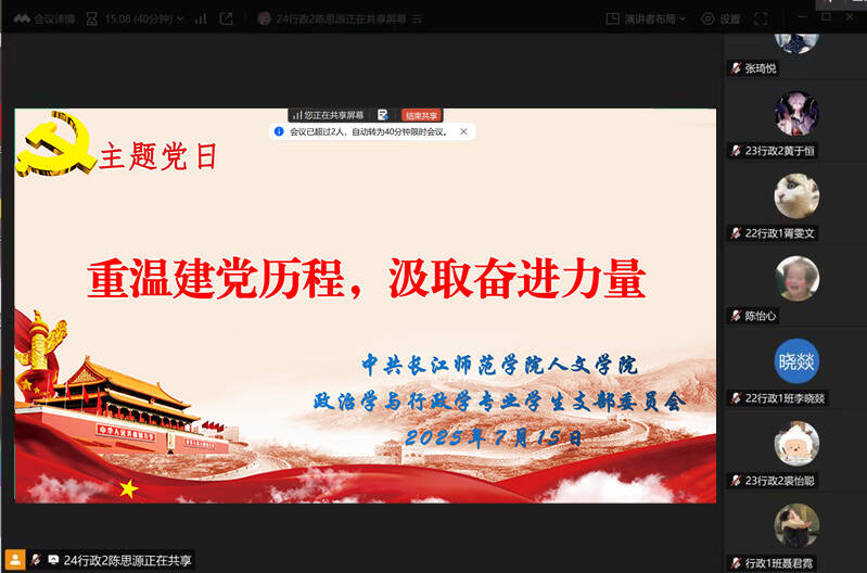 根据学校党委组织部、学院党委的统一安排,2025年7月底,草莓视频 各师生党支部组织开展了“重温建党历程 汲取奋进力量”主题党日活动。活动由各党支部书记主持,全体党员参加。