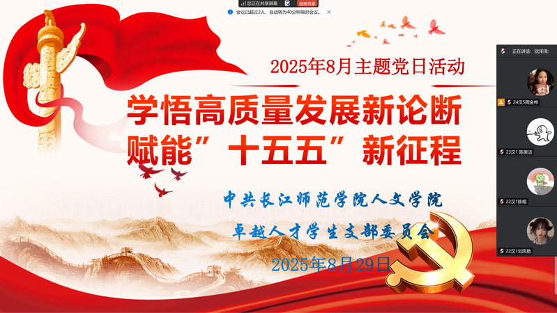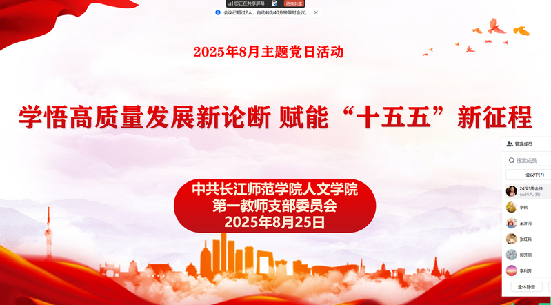 根据学校党委组织部、学院党委的统一安排,2025年8月底,草莓视频 各师生党支部组织开展了“学悟高质量发展新论断 赋能‘十五五’新征程”主题党日活动。活动由各党支部书记主持,全体师生党员参加。
