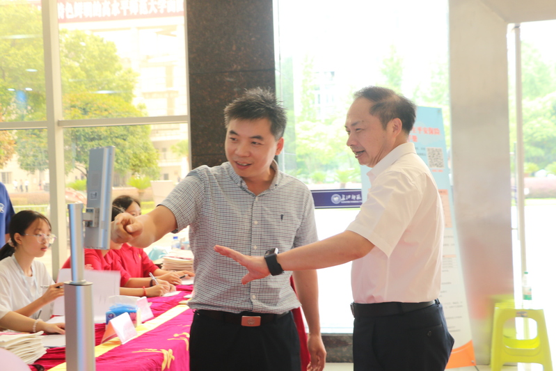 9月9日上午,学校党委书记黄大勇、党委副书记向小川一行深入草莓视频 迎新报到点,检查指导2025年迎新工作,对2025级新生及家长的到来表示欢迎。