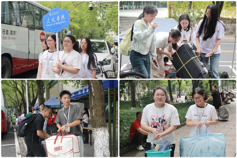 为保障迎新工作平稳有序推进,学院及时召开迎新工作布置会,精心制定迎新工作方案及新生入学教育计划,辅导员、代班同学提前向2025级新生发布“报到须知”,提供入学咨询服务。在迎新现场,志愿者们热情饱满、各司其职,他们热心引导、答疑解惑、搬运行李的身影构成一道亮丽的风景线,展现出人文学子良好的精神风貌。