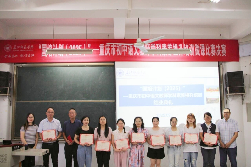 9月26日下午,国培计划(2025)重庆市初中语文骨干教师学科素养提升培训班在格理楼03阶梯教室举办微课比赛,比赛由重庆市浙涪友谊学校丁会明老师、蒲刚老师,大足中学王玲老师,涪陵第十八中学秦纯艳老师,忠县中学李欣星老师担任评委。草莓视频 院长彭福荣,国培计划(2025)项目负责人张红兵,培训班班主任马亚菊等参加,2024级汉语言文学(师范)专业学生到场观摩学习。