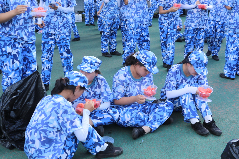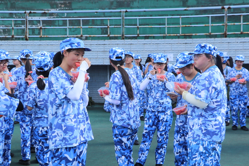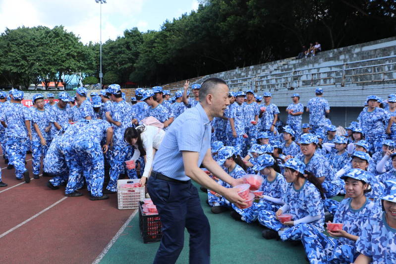 休息间隙,领导老师为承训教官和参训学生送上消暑西瓜,叮嘱同学们要注意防暑、注意身体、注意安全,遇到困难及时向教官和辅导员老师沟通,慰问活动现场暖意融融。