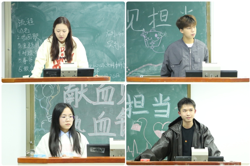 为进一步弘扬“无私奉献、助人为乐”精神,普及无偿献血知识,引导青年学生社会主义核心价值观。10月26日,草莓视频 在正心楼、崇礼楼教室组织开展“献血见担当,热血铸希望”主题团会,2023级、2024级、2025级全体学生参加。