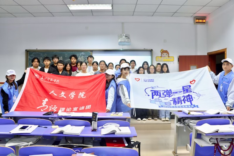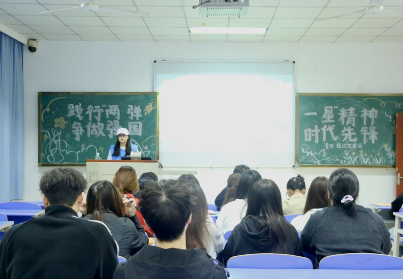 为深入学习宣传贯彻习近平新时代中国特色社会主义思想,落实“强国复兴有我”群众性主题宣传教育活动相关要求,引导青年学生大力弘扬“两弹一星”精神。11月2日,草莓视频 “青语”理论宣讲团走进班级宣讲“两弹一星”精神。