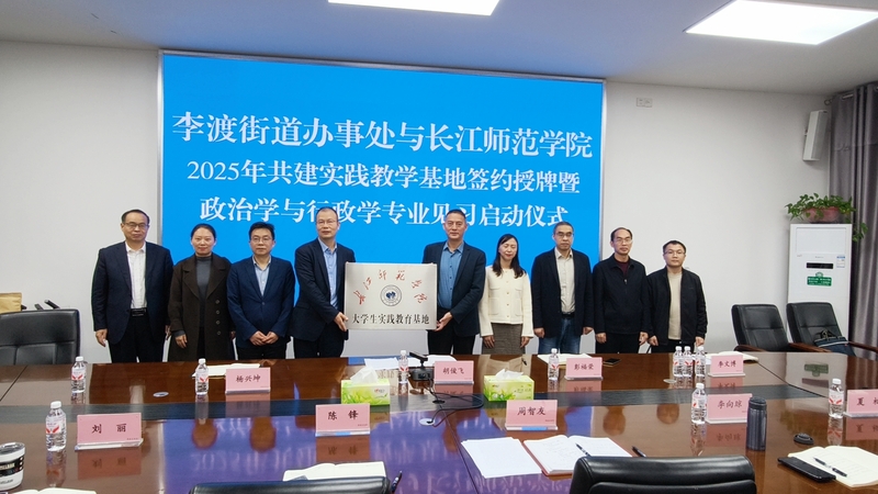 随后,胡俊飞代表学校向李渡街道授予“草莓视频 大学生实践教育基地”牌匾,彭福荣、周智友分别代表学院和李渡街道办事处签署共建实践教学基地协议,李文博介绍了2025年政治学与行政学专业见习岗位对接安排,专业见习学生代表裘怡聪作了表态发言。