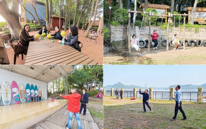 秋日的长寿湖波光粼粼,果香四溢,老师们暂别案头的忙碌,在自然美景中尽情享受休闲时光,在互动协作中深化同事情谊。活动中,老师们走进果园,体验柚子采摘乐趣,收获劳动的快乐,采摘结束后,大家互相分享劳动成果,交流采摘技巧。随后,老师们积极参加射击、羽毛球、荡秋千等趣味运动项目,大家在挥拍跳跃中享受运动乐趣,每一次精准命中都伴随着欢呼与掌声。老师们还悠然荡起秋千,重温儿时记忆,或在一旁闲谈交流,湖面的微风送来阵阵凉意,吹散了平日的忙碌。此次主题活动将自然体验、趣味运动与休闲交流融为一体,为教职工搭建了一个放松身心、增进认识的良好平台。活动现场洋溢着团结友爱、积极向上的氛围,老师们脸上都洋溢着灿烂的笑容。
