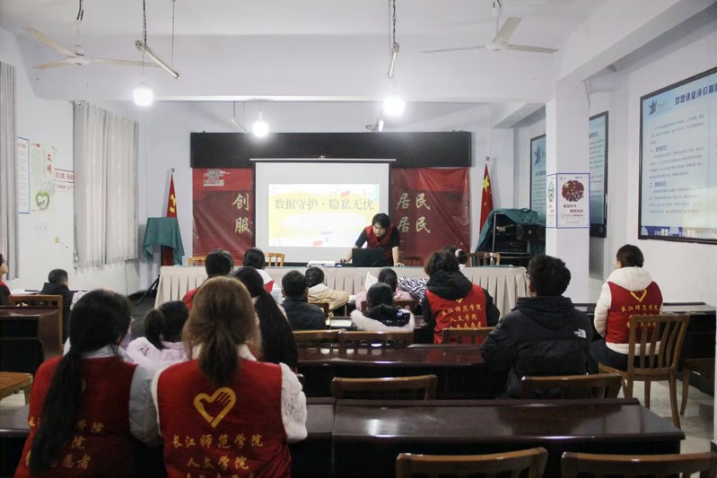 活动现场,志愿者以多媒体PPT课件为载体,采用动画演示、案例讲解、情景互动等形式开展主题授课。志愿者们将“设置安全密码”“不点击陌生链接”“保护个人信息”等核心知识,转化为浅显易懂的语言与趣味小故事,还模拟“陌生网友索要家庭住址”“不明链接跳转弹窗”等常见网络场景,引导孩子们主动识别辨别风险,掌握“拒绝透露隐私”“及时告知家长”等防护技能,引导孩子们养成良好的网络行为习惯。