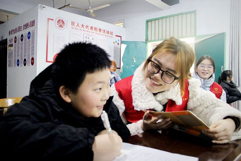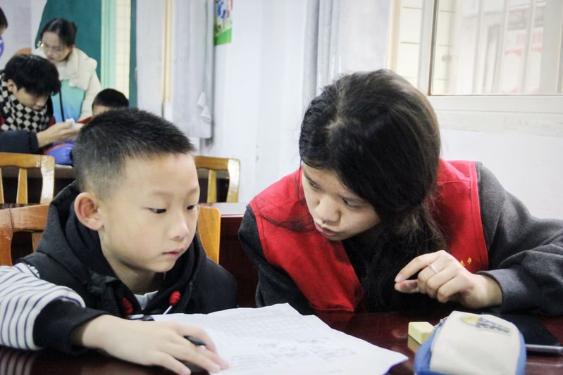 随后,志愿者针对孩子们在数学、语文课程学习中遇到的难点问题,开展一对一辅导,借助“数学闯关游戏”“词语接龙竞答”等形式,引导社区孩子们举一反三。同时,志愿者们通过英文儿歌学唱、简单口语对话等形式,讲解基础英语发音与词汇,有效激发了孩子们的学习兴趣,营造出轻松愉悦的学习氛围。