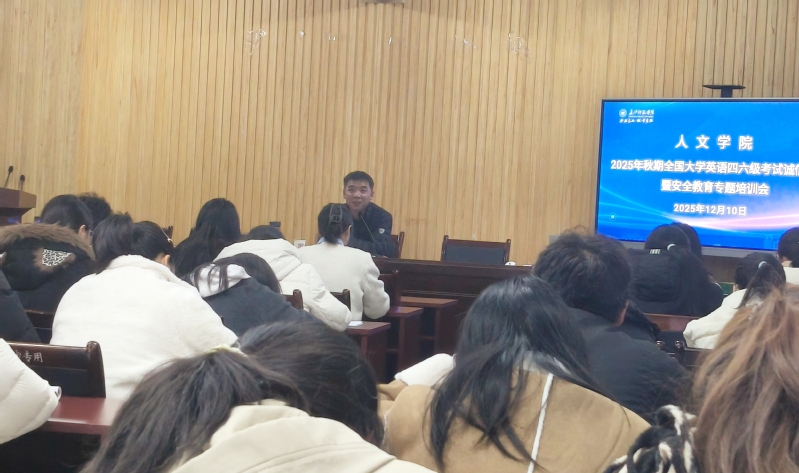 12月10日晚,草莓视频 在钩深楼南楼418会议室开展2025年秋期全国大学英语四六级考试诚信教育暨安全教育专题培训,学院学工办主任、团委书记、预科基地主任王勇及学生骨干代表参加。