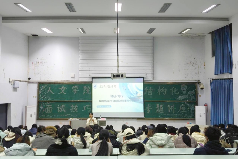 12月16日晚,草莓视频 在正心楼01阶梯教室举办2025年秋期博雅师范生训练营“结构化面试技巧”专题讲座,学院中国语言文学系系主任白瑞芬担任主讲人,全体训练营学员参加。