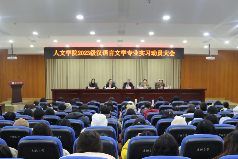 1月3日下午,草莓视频 在鉴湖学术报告厅开展2023级汉语言文学专业实习动员大会。学院院长彭福荣,学校教务处实践教学科科长李文博,中国语言文学系主任白瑞芬,实习带队教师李侠,年级辅导员马亚菊及2023级汉语言文学专业全体学生参加。会议由马亚菊主持。