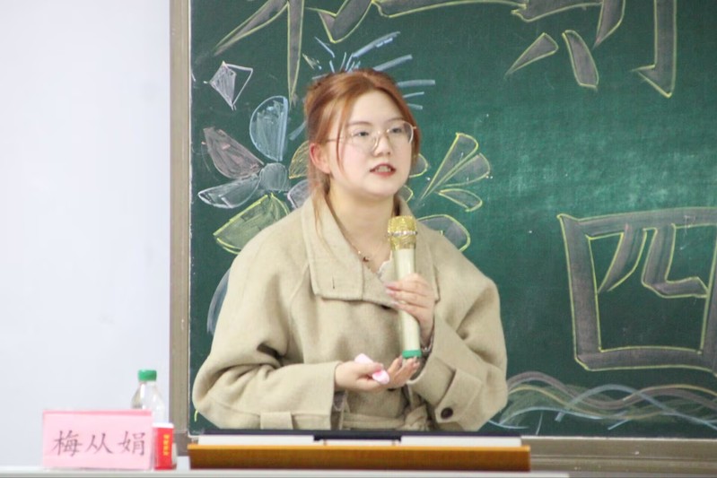 活动中,第十一届“田家炳杯”全国师范院校师范生教学技能竞赛(汉语言文学组)一等奖获得者、2022级汉语言文学专业梅从娟结合自身教师招聘考试、师范生竞赛等情况,向训练营全体同学详细介绍了结构化面试核心要素、主要流程规范、评分标准及常见题型等内容,呼吁同学们加强三笔字、普通话、教材研读、备课说课等师范基本功训练,积极参加师范生教学技能竞赛,不断提升专业实践能力。